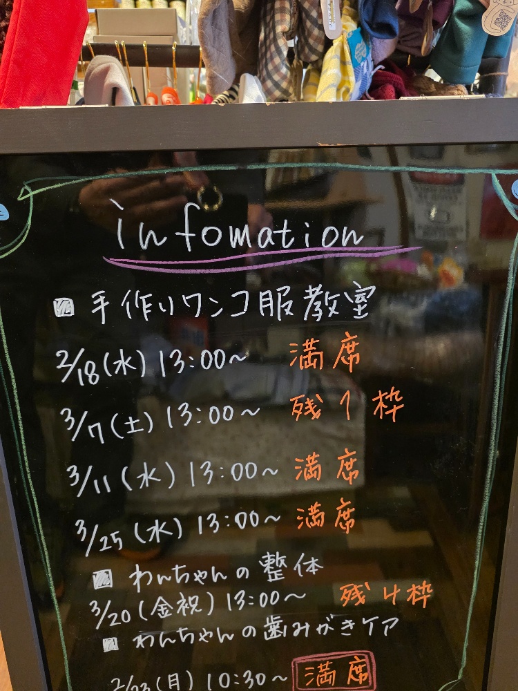 | お問い合わせください。 満員御礼ありがとうございます。 月に2.3回手作り教室を開いています。 3時間ほどでわんちゃんの服が完成。 手ぶらで👌 前もってわんちゃんのサイズをお知らせ下さい。 スペースが狭いために中型犬までスペース利用可能 服は大型犬用も🆗‼️ ↓↓↓↓インスタ、ラインからお願い致します |
